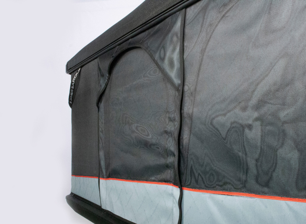 Το ύφασμα σκηνής James Baroud παρέχει εξαιρετικό αερισμό και μειώνει τη συμπύκνωση χάρη στην τεντωμένη τάση του, η οποία επιτρέπει τη διέλευση του αέρα, ενώ παράλληλα κρατάει το νερό έξω. Υλικά υψηλής ποιότητας, όπως το ύφασμα Frontier 100% που εμποδίζει το φως, προσφέρουν εξαιρετική θερμομόνωση και ακουστική μόνωση. Δεκαετίες δεξιοτεχνίας εξασφαλίζουν ακριβείς κοπές και ισχυρές ραφές, εγγυώμενες εξαιρετική ανθεκτικότητα και αντοχή στις καιρικές συνθήκες. Με κορυφαία 5ετή εγγύηση στον κλάδο, η James Baroud αντιπροσωπεύει κορυφαία ποιότητα και μακροζωία.