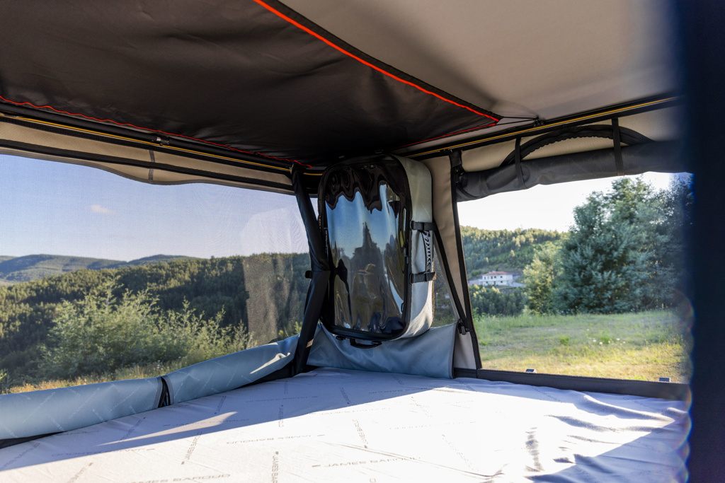 Στη σκηνή οροφής υπάρχει ένα νέο στρώμα αφρού υψηλής πυκνότητας, το οποίο με πάχος 65 mm παρέχει μια απαλή και ζεστή βάση για έναν ξεκούραστο ύπνο. Η άνεση ενισχύεται από ένα κάλυμμα δαπέδου PVC. Η μαγνητική λάμπα LED παρέχει άφθονο φωτισμό τη νύχτα με πολλαπλές λειτουργίες και ανοιχτά χρώματα και μπορεί να φορτιστεί μέσω USB και να συνδεθεί με τη δική της βάση. Ο ανεμιστήρας οροφής παρέχει άνετες συνθήκες αέρα σε διαφορετικές θερμοκρασίες με κυκλοφορία αέρα. Μέσω του διχτυού οροφής, το οποίο παρέχει χώρο για δύο υπνόσακους, για παράδειγμα, και αρκετές εσωτερικές τσέπες, υπάρχει αρκετός χώρος αποθήκευσης για άλλα αντικείμενα. Δεν χρειάζεται να ανησυχείτε για έλλειψη χώρου κατά την κατασκήνωση!